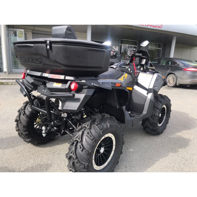 Топовая модель - STELS 850 GUEPARD Trophy PRO EPS CVTech с электроусилителем и с канадским вариатором. Этот квадроцикл был разработан компанией «Веломоторс» специально для скоростного передвижения по пересеченной местности, непроходимой почве и полному бездорожью. Благодаря вариаторной коробке передач канадского производства, конструкторами был рассчитан оптимальный крутящий момент, обеспечивающий высокую динамику разгона с минимальными затратами топлива.