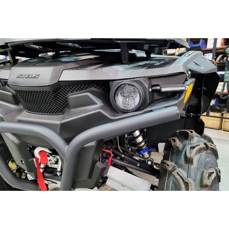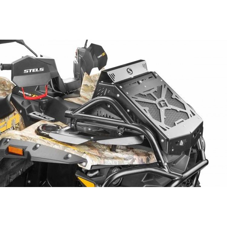 Квадроцикл STELS 850 GUEPARD Trophy PRO EPS (с электроусилителем руля) – это новая модель мотовездехода от компании «Веломоторс». Конструкторы компании постарались собрать наработки, которые были положительно отмечены пользователями в предыдущих моделях. Благодаря этому вездеход получил двигатель с вариаторной коробкой передач, выносной радиатор и подвеску с пружинно-гидравлическими амортизаторами. Объемный топливный бак позволил увеличить максимальный километраж поездки, что станет заметным плюсом для тех, кто любит долгие экстремальные поездки или настоящие адреналиновые марафоны.
