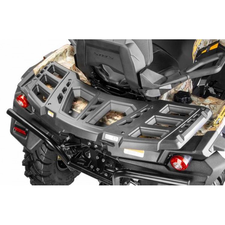 Среди других особенностей квадроцикла 850 GUEPARD Trophy PRO EPS стоит отметить комфортабельное место водителя, алюминиевую защиту днища и светодиодное освещение, которое обеспечит безопасность во время ночных поездок. Конструкция рамы отличается отличной балансировкой, которая придаёт этому транспорту устойчивость. Наличие багажных отделений и высокие тяговые характеристики квадроцикла позволят взять с собой в путешествие дополнительный запас топлива, воды и прочих вещей, которые могут пригодиться на рыбалке или охоте.